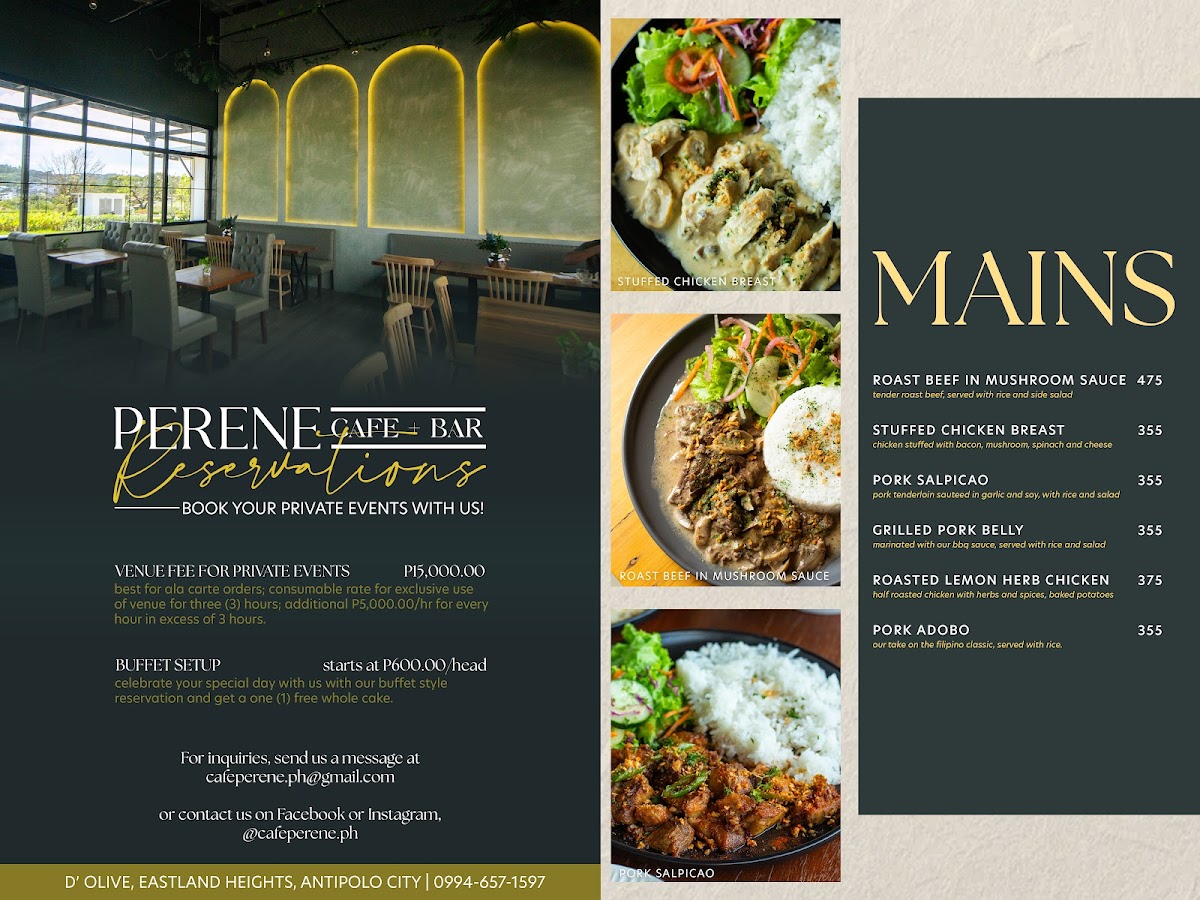 Welcome to Perene Cafe + Bar, a delightful culinary gem nestled in the serene surroundings of Antipolo City. Their menu is a harmonious blend of comforting pastries, hearty mains, and specialty cakes that promise to tantalize your taste buds.